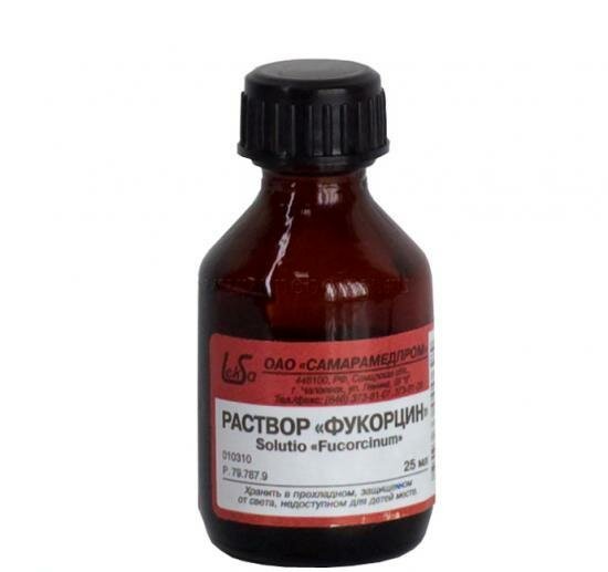 Фукорцин – это сложносоставной медицинский препарат насыщенного розового цвета, который обладает антисептическими свойствами и применяется исключительно наружно. Состав лекарства таков, что он одновременно способен устранять не только микробные вредоносные организмы, но и грибковые. В некотором роде раствор Фукорцина по свойствам схож с раствором зеленки, однако, розовый препарат способствует заживлению без рубцов, предупреждает дальнейшее микробное заражение ран, и является средством противогрибковым, чего нельзя сказать о растворе зеленки. Общим недостатком считается окрашивание кожных покровов, но при необходимости устранить следы препарата можно при помощи кислоты салициловой или же перекиси водорода.